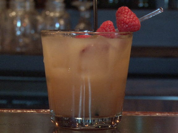 Method: You build this in an old fashioned glass filled with ice. Add the measured amount of vodka. Pour in orange juice to about a half and inch from the rim of the glass. Top off with a half ounce of raspberry liqueur. Garnish with three fresh raspberries.