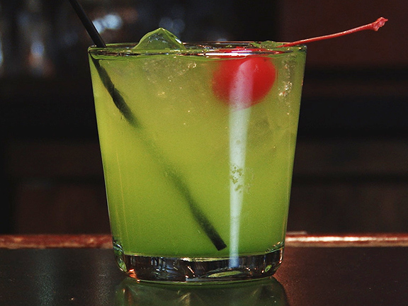 Method: In an old fashioned glass with ice. Build this by adding the measured amounts of vodka and melon liqueur. Top off with pineapple juice. Stir and drop in a maraschino cherry for garnish.